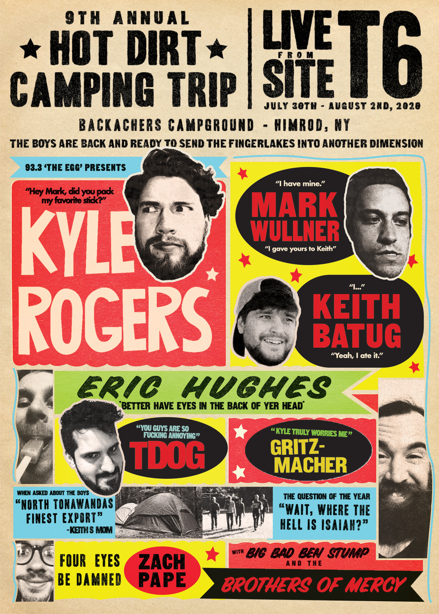 Poster created for the annual Hot Dirt camping trip to the Fingerlakes. Featuring the acts of today, tomorrow,