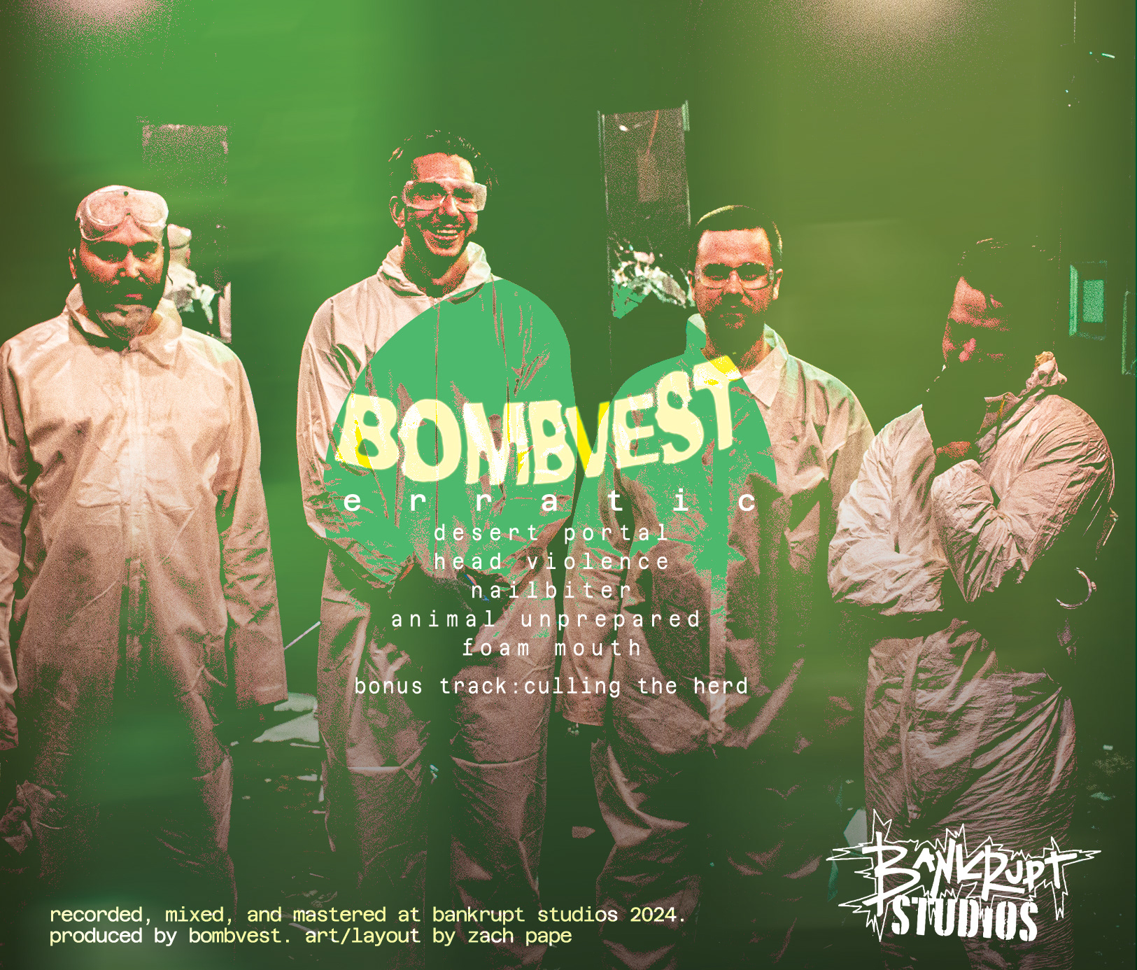 Album art and accompanying apparel release for BOMBVEST, Buffalo, NY hardcore punk band.