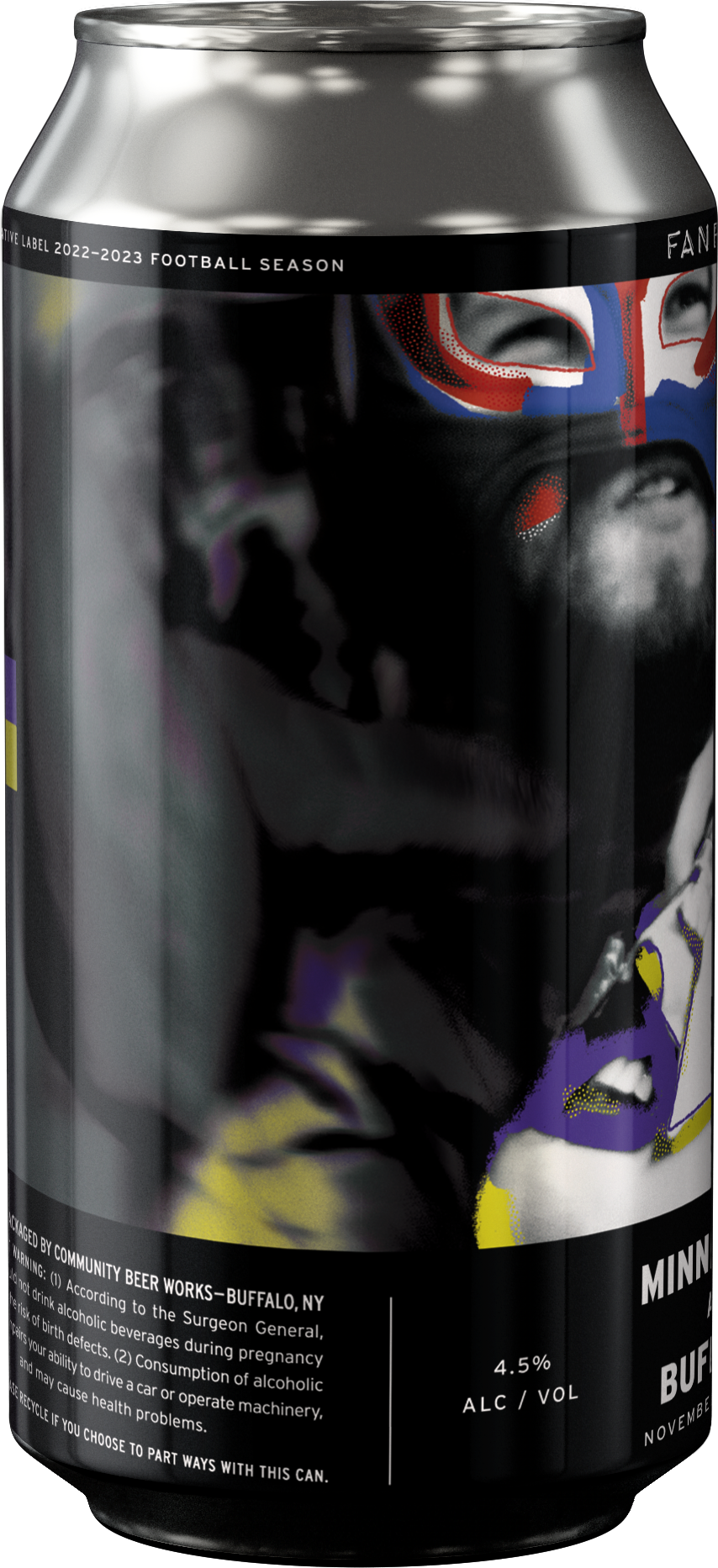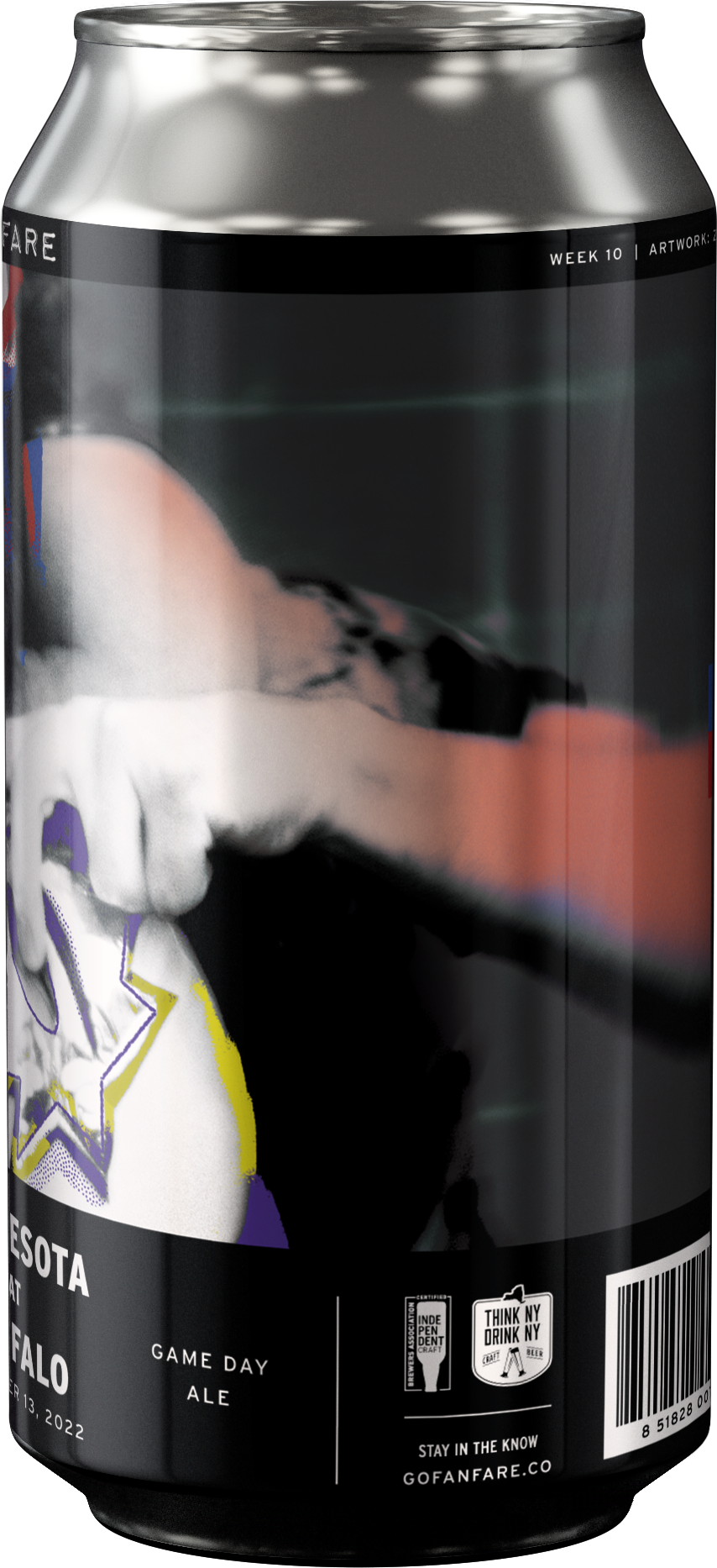 Can label done for 'FANFARE', a local company making custom beer labels for each Buffalo Bills games. Each can is to represent a specific opponent. I had the pleasure of working on the label for the Vikings game.