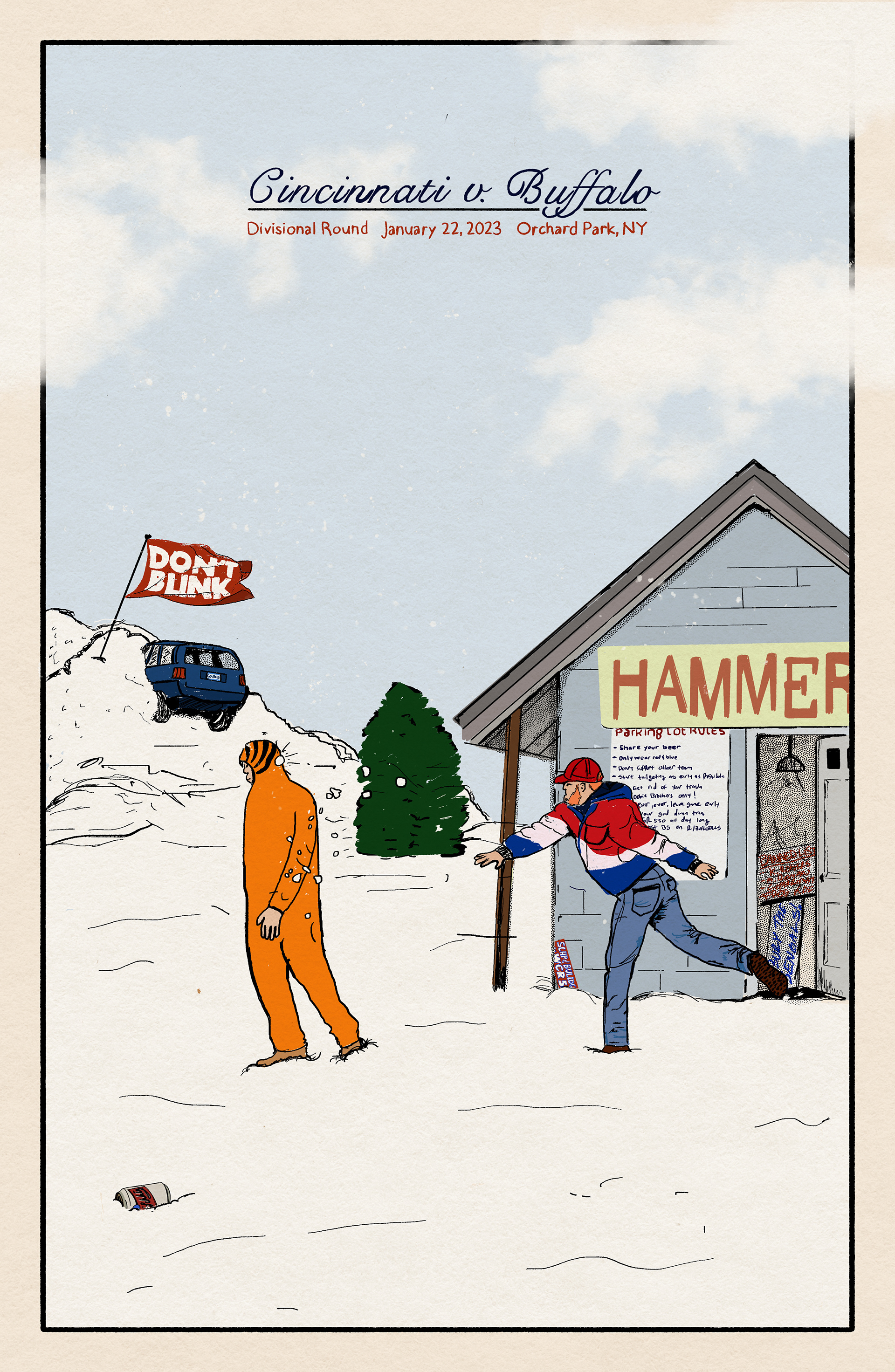 Poster for the 'Leftern Gameday Series', a local Buffalo effort to make unique gameday prints for each Buffalo Bills game. Created for the Bengals @ Bills Divisional playoff game.