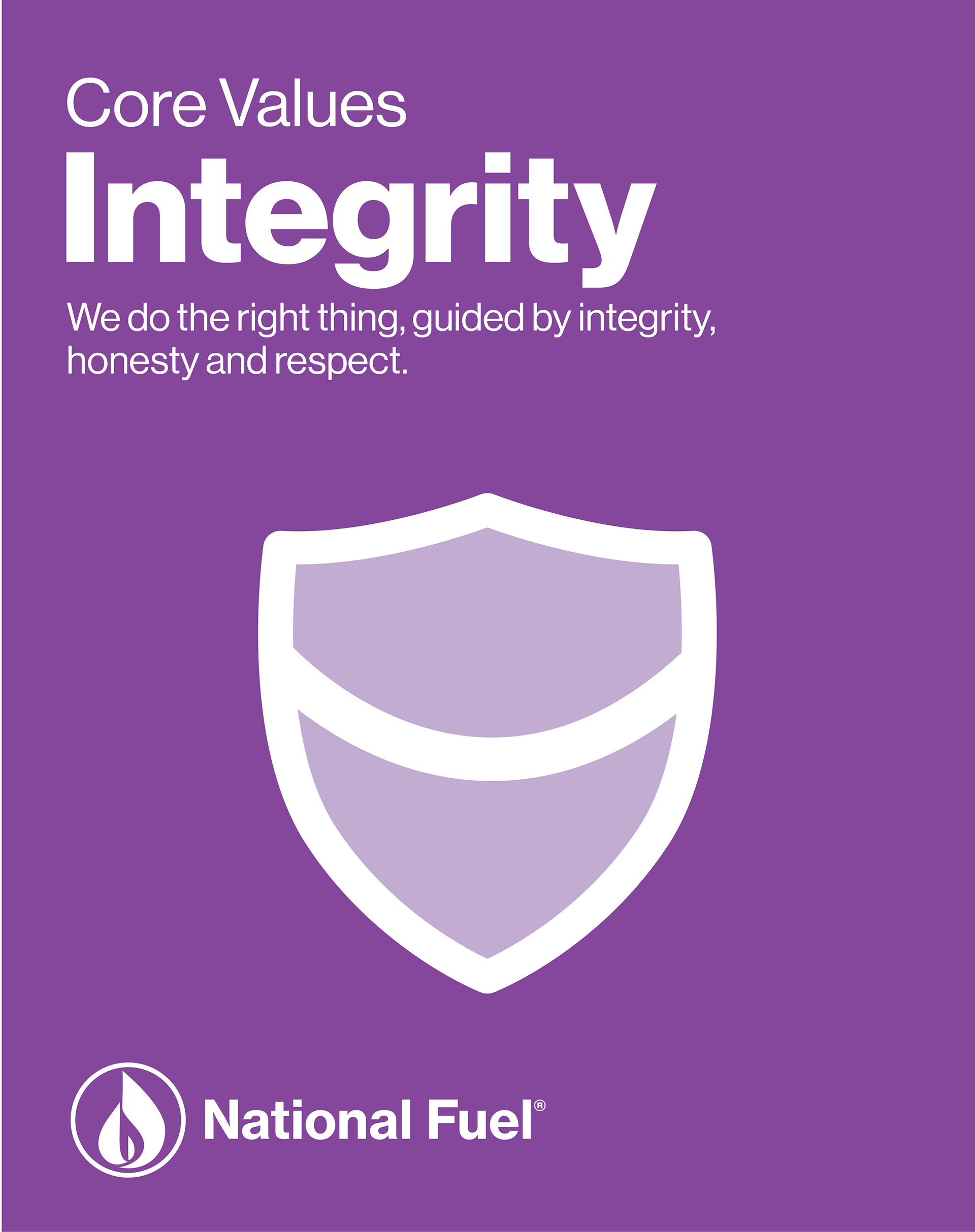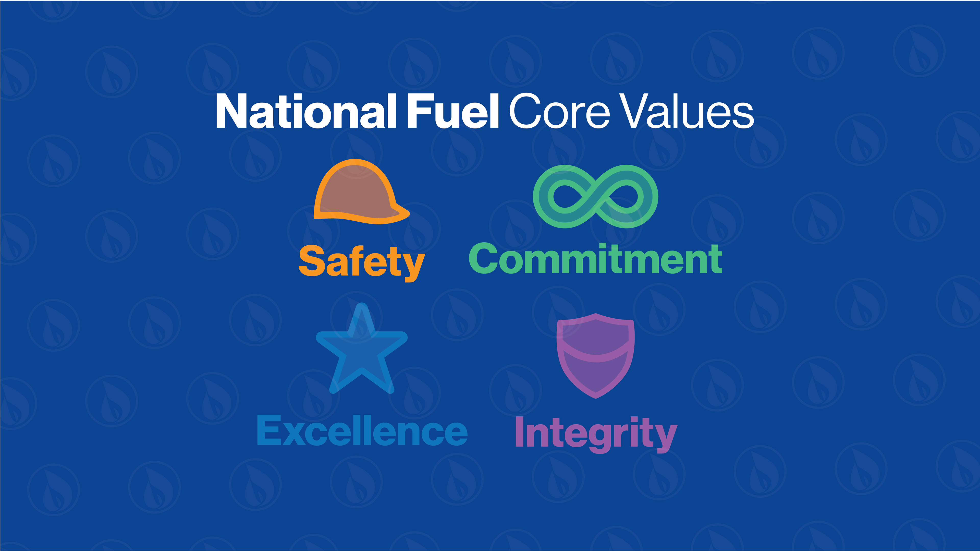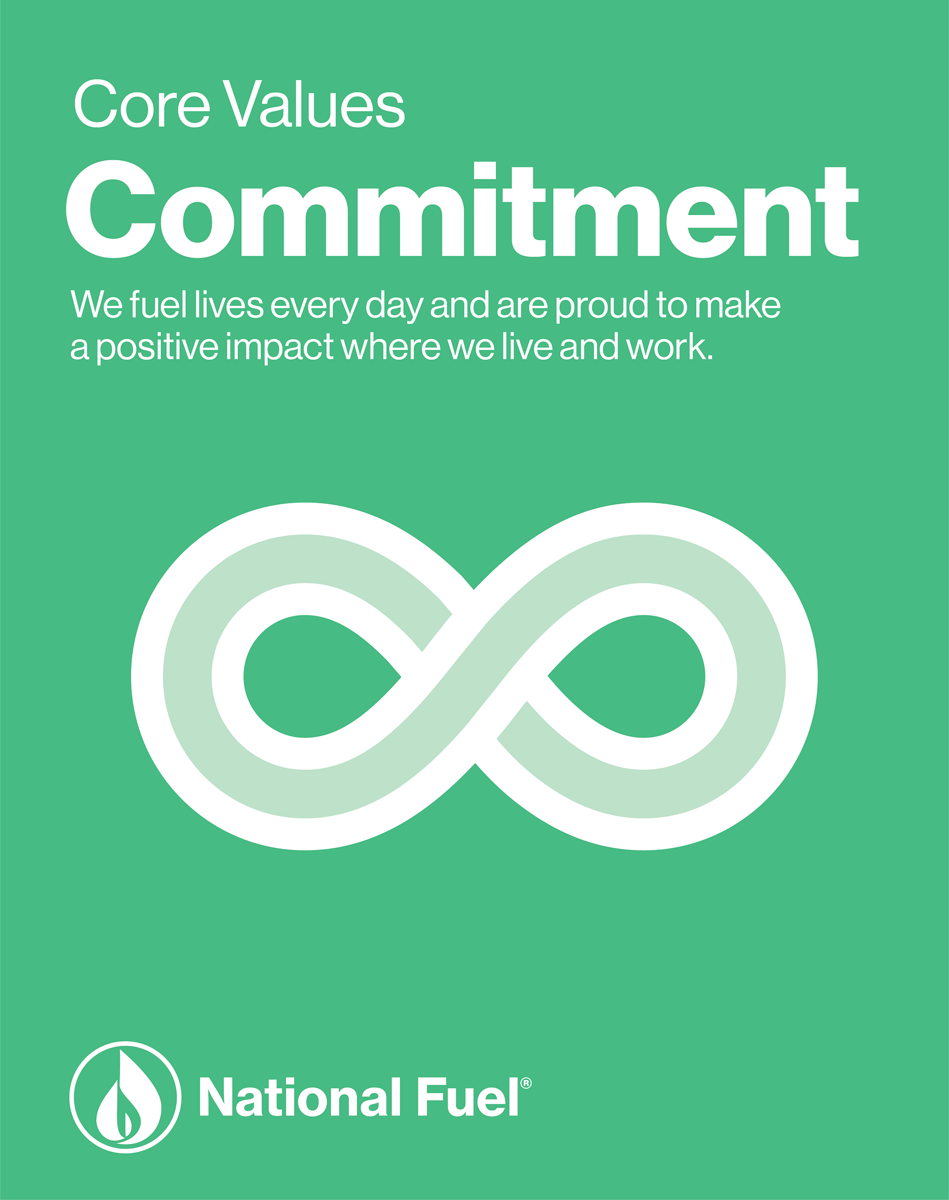 New Core Values designs for National Fuel Gas Company. NFG, a prominent NYS and PA utility company, desired a simple, easy to communicate system for employees to follow and see throughout office spaces. The goal was to work outside of the normal brand colors and create something a bit more 'fun' for what the brand is used to. Each value has its own color and icon aligned to it.