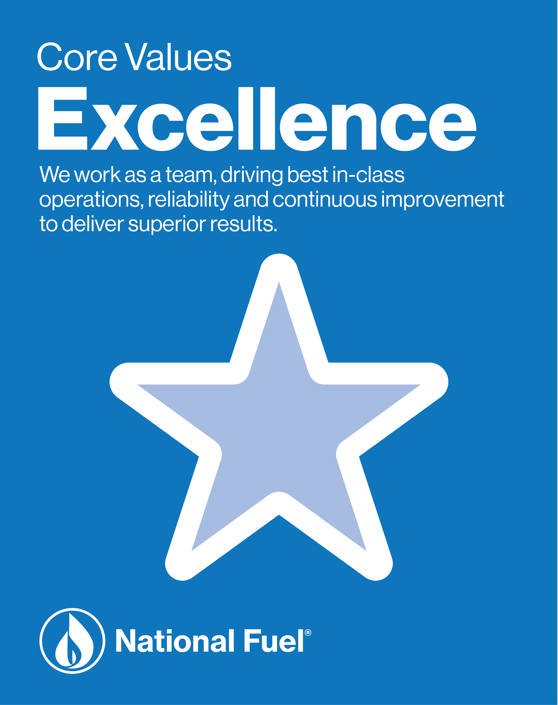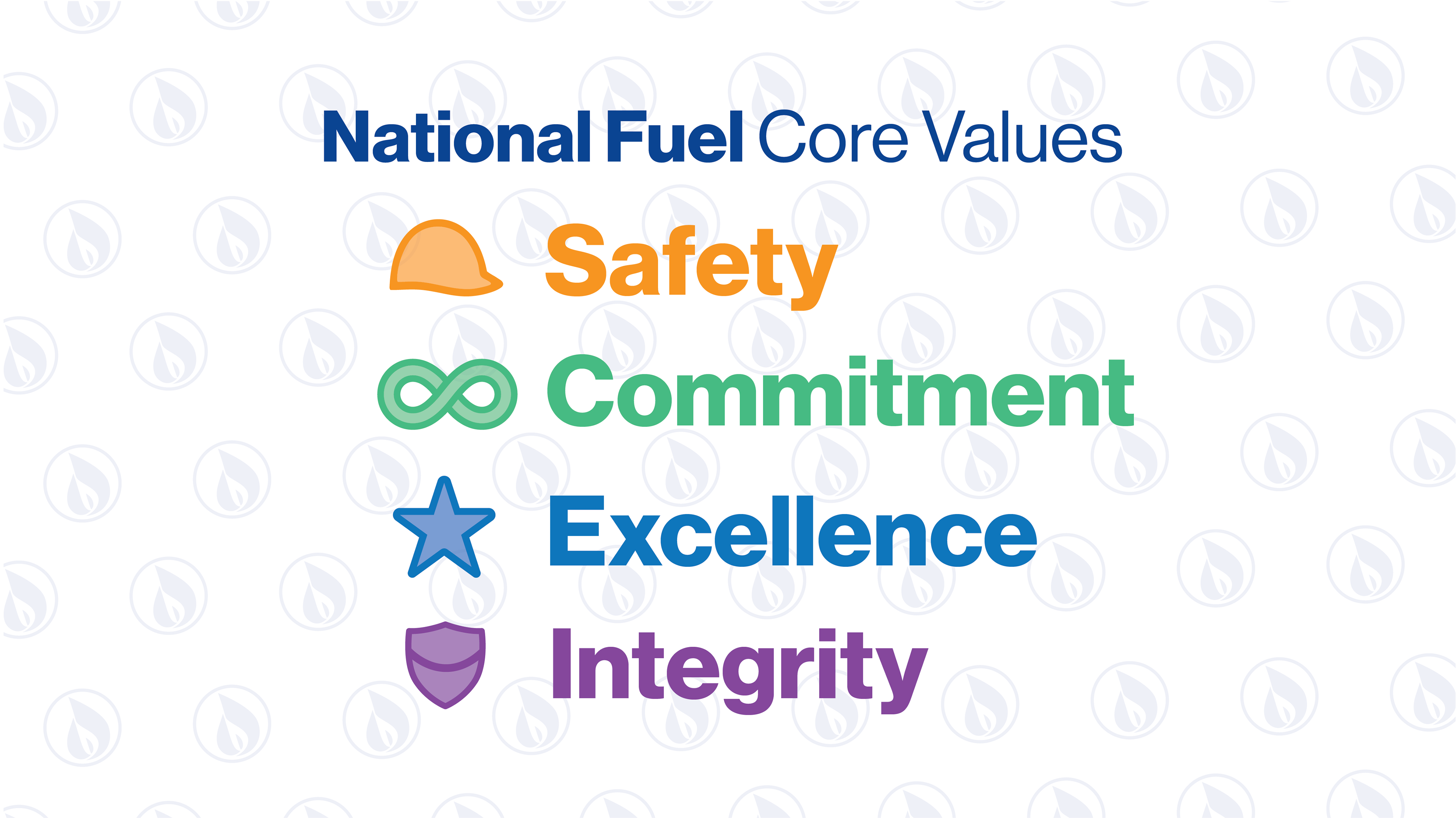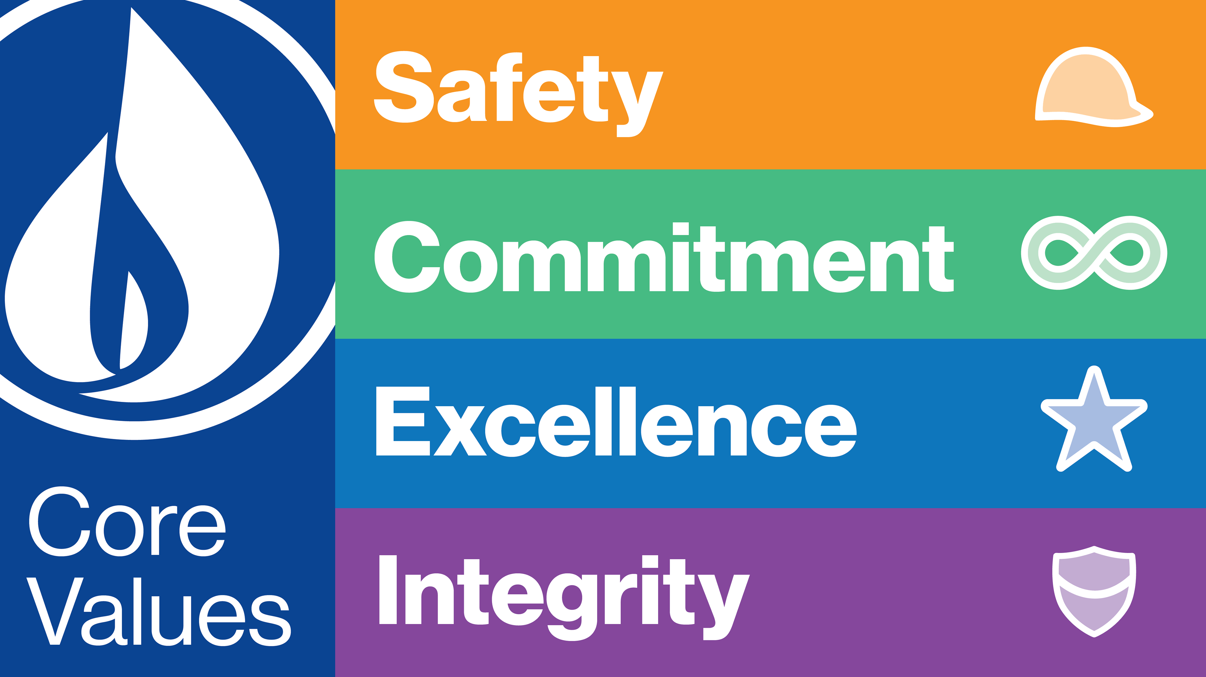 New Core Values designs for National Fuel Gas Company. NFG, a prominent NYS and PA utility company, desired a simple, easy to communicate system for employees to follow and see throughout office spaces. The goal was to work outside of the normal brand colors and create something a bit more 'fun' for what the brand is used to. Each value has its own color and icon aligned to it.
